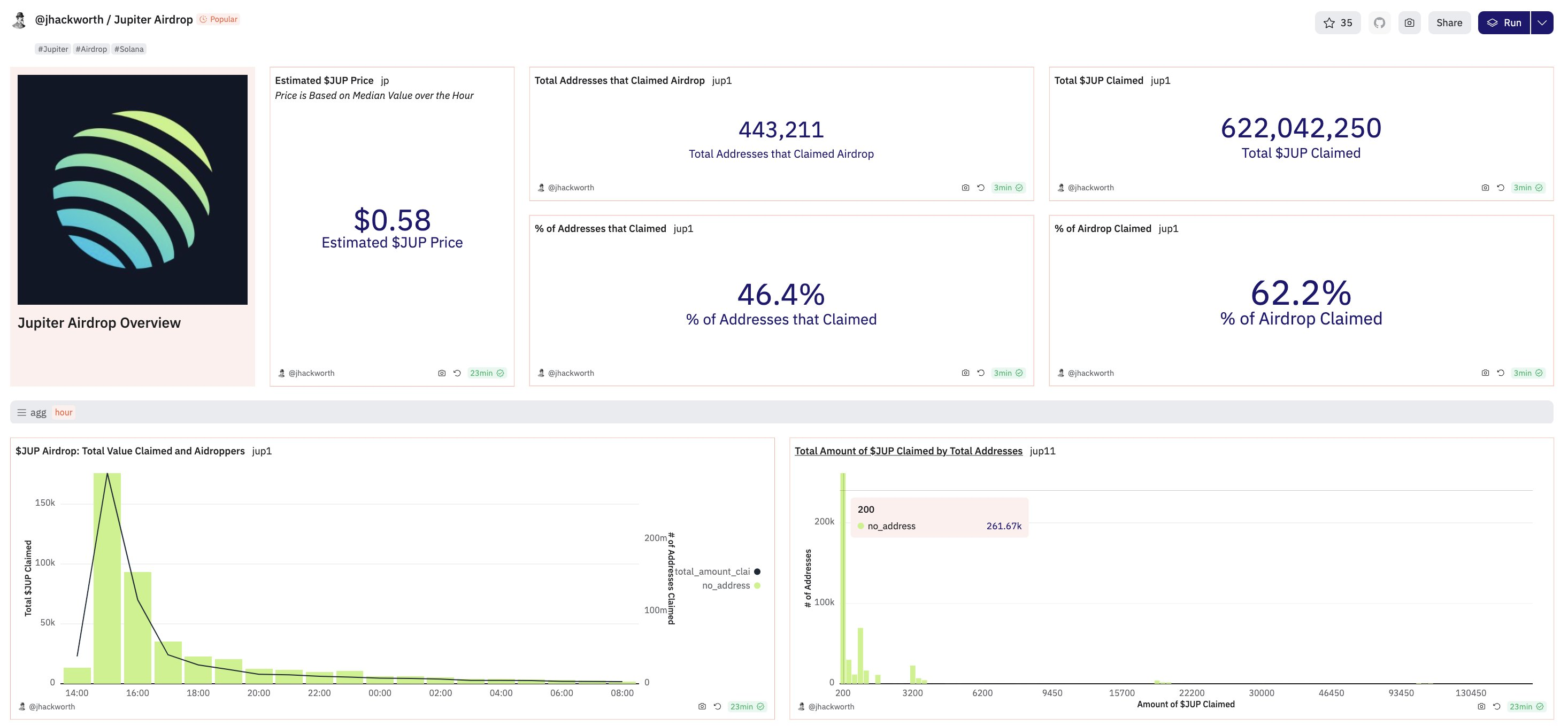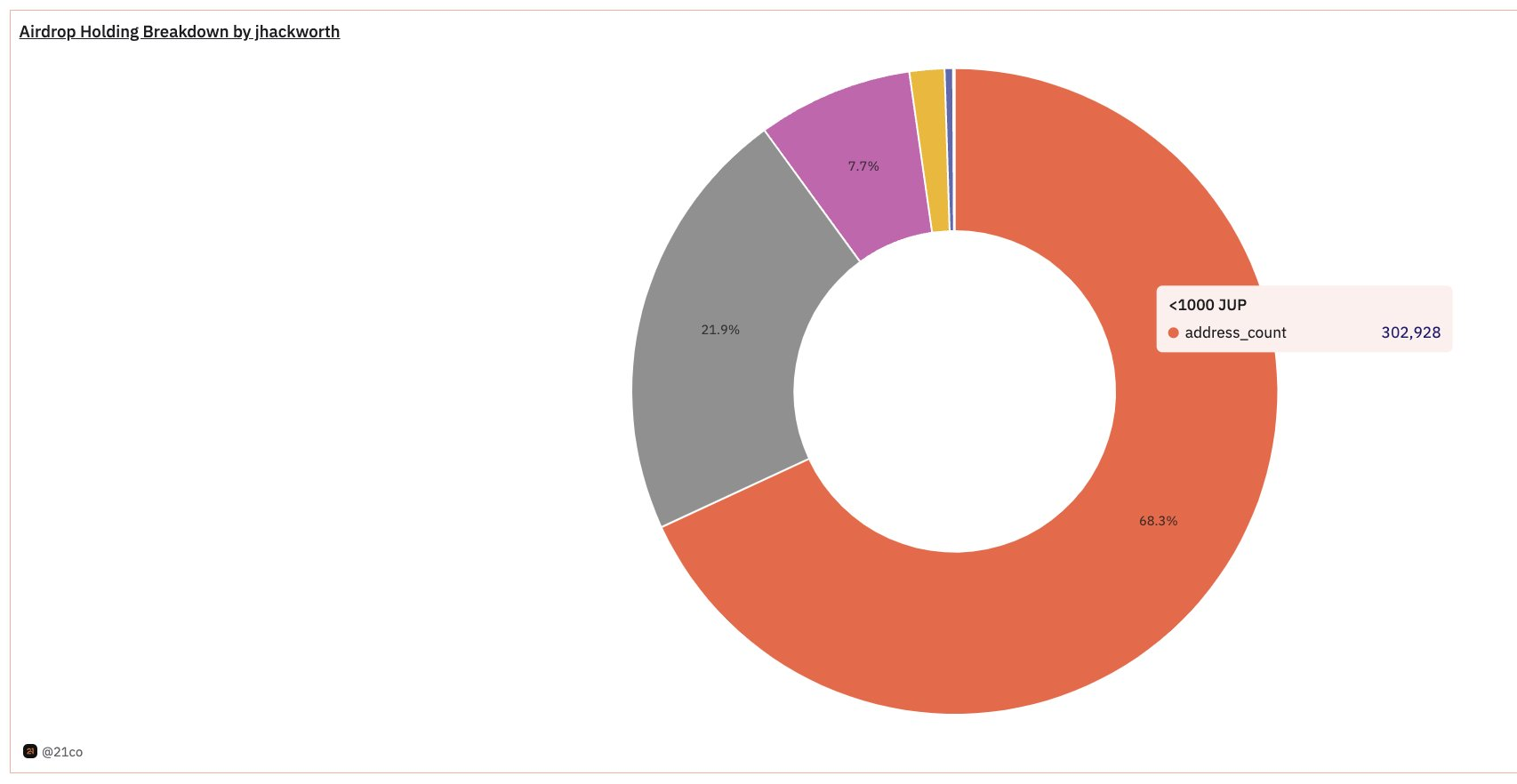 Jupiter 发币之后:6 成地址仅获 200JUP,空投效应促成链上活跃新高