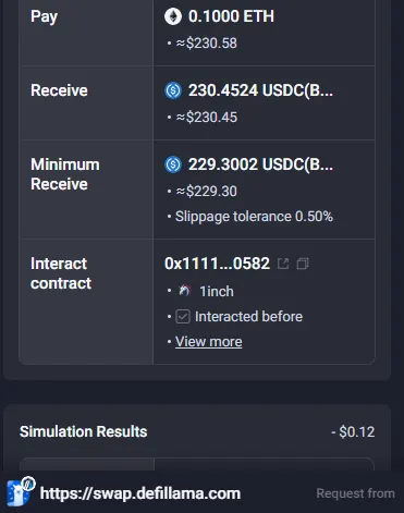 - 交易模拟结果:对于与dApp的每次交互,钱包会显示您的预估余额变化