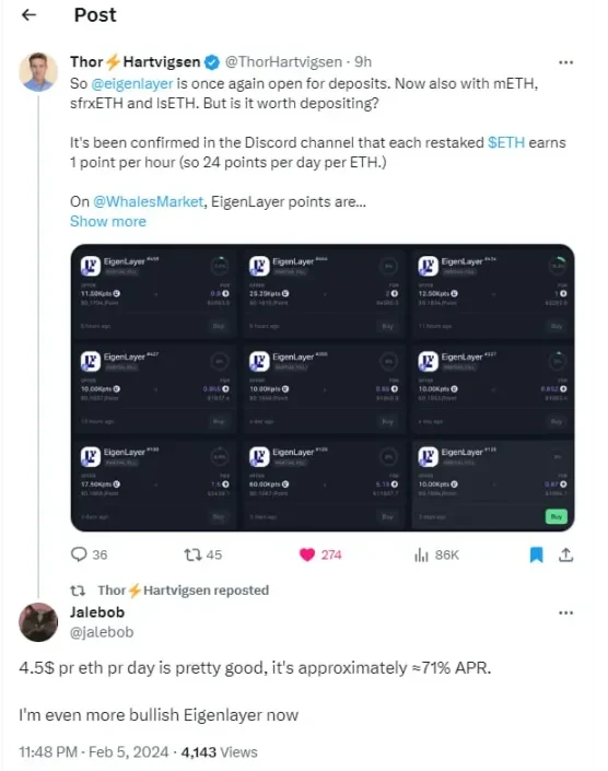 EigenLayer 昨天再次开放其质押窗口,并将一直持续到 2 月 10 日。
