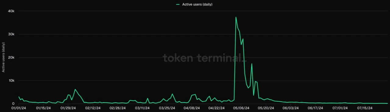 然而,上面这些产品,无一例外,最终还是渐渐变得无人问津。就拿 Friend.Tech 来说,高峰期其日活用户超过 7 万,日成交量超过 1000 ETH;但如今日活跃用户仅 20 多人,交易量只有 1 ETH。从巅峰到落寞,Friend.Tech 生命周期不足一年。