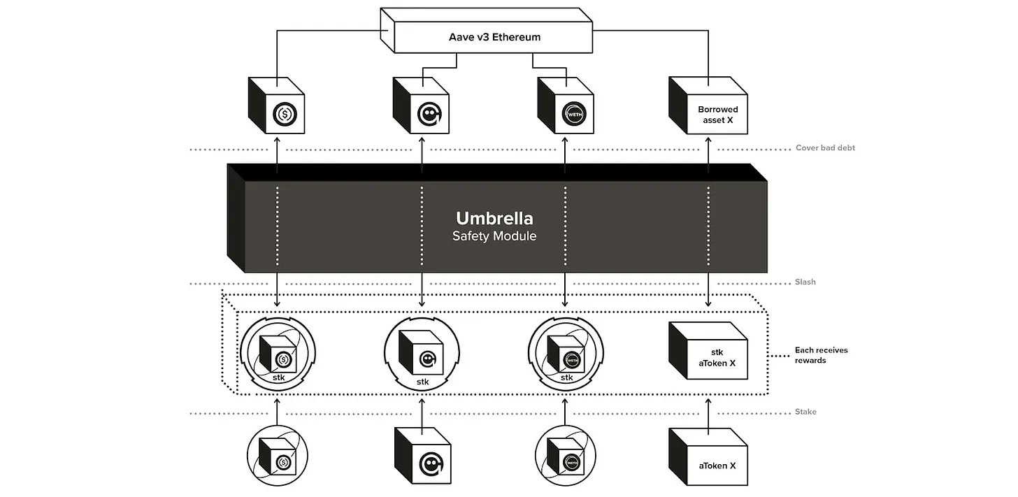 Umbrella 机制将允许 Aave 从安全模块中扣押 $aTokens 并直接销毁它们,以抵消坏账。