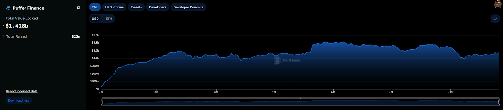 截止8月26日,Puffer TVL已超过14亿美金,其发展速度之快主要得益于众多投资人的支持。