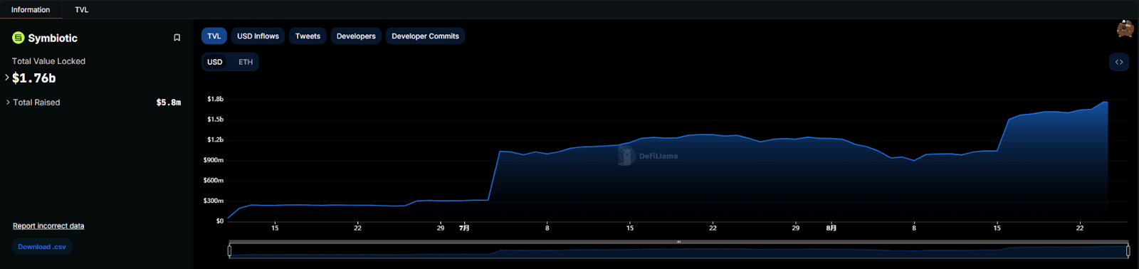 鉴于最近围绕 Eigenlayer 空投的争议,许多用户对空投条款不满意,一些用户开始在平台上发起提现请求。随着用户和农民寻找下一个协议来赚取收益和农场空投,Symbiotic 似乎是下一个合乎逻辑的选择。截止8月26日,其TVL已超过17亿美金。