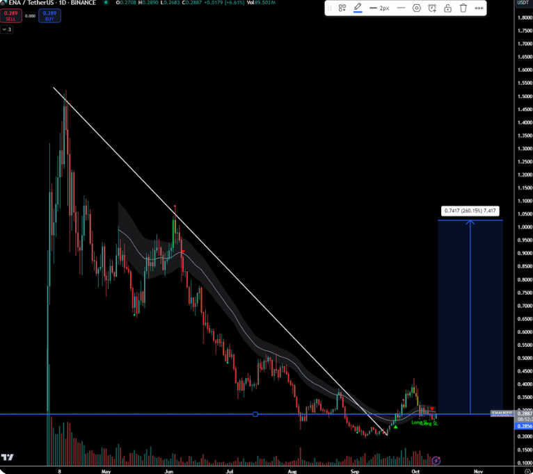 那么,为什么你现在应该关注这个“邪恶的”风投币呢?答案很简单——在接下来的 6 个月中,市场上将涌现出大幅减少的 $ENA 数量,这将显著减轻卖压。昨天,第一批代币已被释放,在总共增加的 1.25 亿美元供应中,农民仅认领了 3000 万美元,选择锁定其余的代币。考虑到农民在过去几个月中一直是主要的边际卖家,他们停止出售后会发生什么?价格已经在 20 美分处找到了自然的底部,现在在 26 美分处形成了一个高低点(HL)。