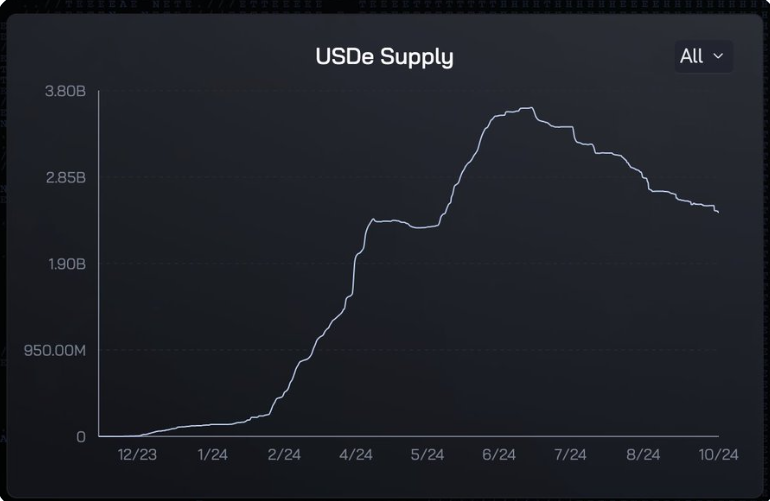 Ethena 是有史以来增长最快的 DeFi 产品。在短短几个月内,它将其收益型稳定币规模扩大到 30 亿美元,自推出以来,没有任何其他稳定币像 USDe 那样增长如此之快。Ethena 故事的第一章专注于打造一种安全的、优越的稳定币。它经受住了极端市场波动的考验,没有出现任何问题,现在它将目光投向了整个加密货币领域的最大奖项——Tether 的 1600 亿美元市场。