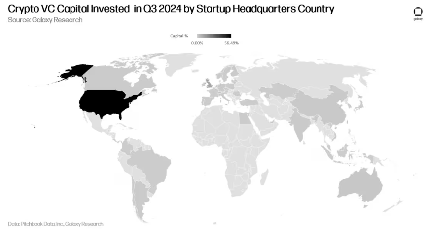 美国继续主导加密风险投资领域,56%的资本投资和44%的交易涉及总部位于美国的公司。