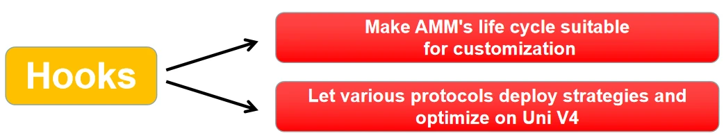 V4 版本的更新优势在于可定制化和效率之间能取得最佳平衡,以求实现超越两者的精度和资金利用率。其中最为重要的 Hooks (也是智能合约)机制赋予了开发者前所未有的灵活性,允许开发者在流动性池生命周期的关键点 ( 例如交易前 / 后、LP 存款 / 取款时 ) 插入自定义逻辑。这使得开发者可以创建高度定制化的流动性池,例如支持时间加权平均市场制造者 (TWAMM)、动态费用、链上限价订单以及与借贷协议的交互等。