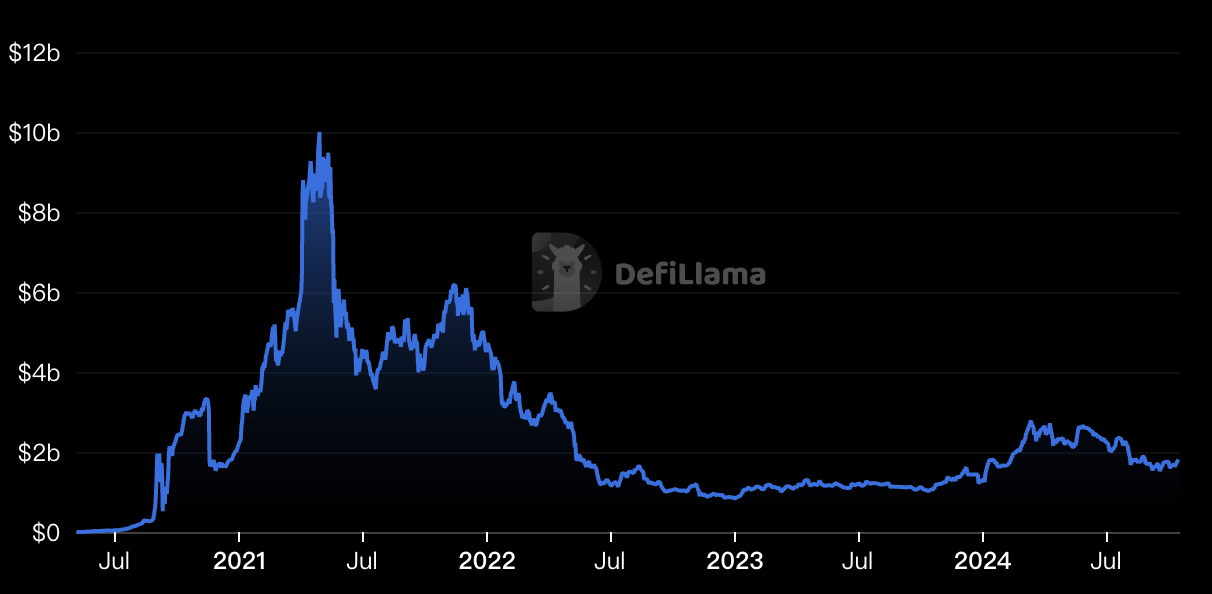 这种思路也可视为早期对抗 MEV 的一种有效方式,除此之外,也使得 AMM 变得更为安全、可靠,UNI 逐渐成为链上 Dex 的主流选择。说完内部改进,我们再说外部原因,UNI 在这个时期崛起其实也有一定的运气因素。20 年的 6 月发生了一件关键事件,正式开启了区块链的黄金时代,也就是我们后来常说的 DeFi Summer。这个事件的起因是借贷平台 Compound Finance 开始向借贷双方奖励 Comp 代币,其他项目也纷纷效仿,从而带来了被称为「收益耕作」或「流动性挖矿」的堆叠投资机会(如今的 point 其实属于流动性挖矿的流氓版)。UNI 作为一个上币门槛极低,可主动添加流动性的 Dex,自然是承载各类山寨项目挖矿的第一选择,「黄金矿工」们踏破门槛的情形宛如 19 世纪中期的加州淘金潮,疯狂的流动性灌入,让 UNI 坐稳了 DeFi 的头把交椅(UNI v2 的 TVL 峰值在 21 年 4 月 29 日超过 100 亿美元)。至此,DeFi 名声大噪,区块链开始迈入主流。