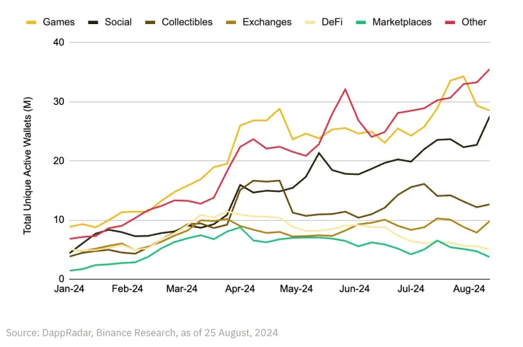 - 新的用例:交易费用的降低将使社交媒体、游戏和供应链管理等领域开发出更多去中心化的应用程序。这些领域目前在链上活动方面代表性不足,但随着基础设施变得更加强大,它们可能会出现显着增长。
