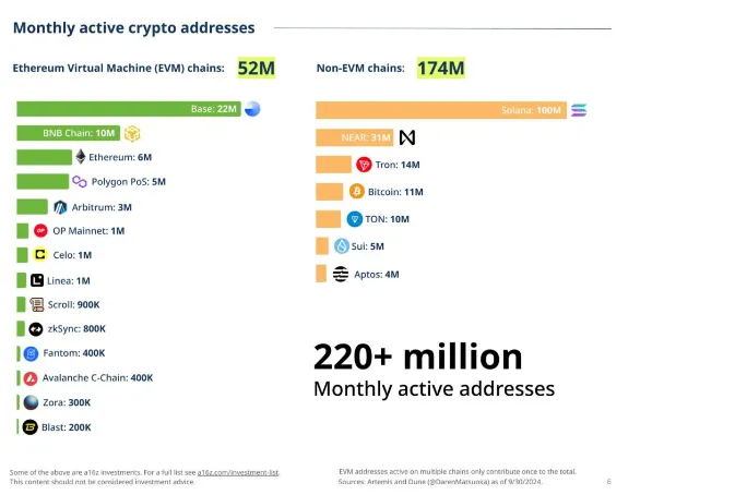 各个区块链网络的月活跃地址数量已达到约 2.2 亿的历史最高水平。但必须注意的是,一个用户可能控制多个地址,因此该数字与唯一用户数量并不直接相关。