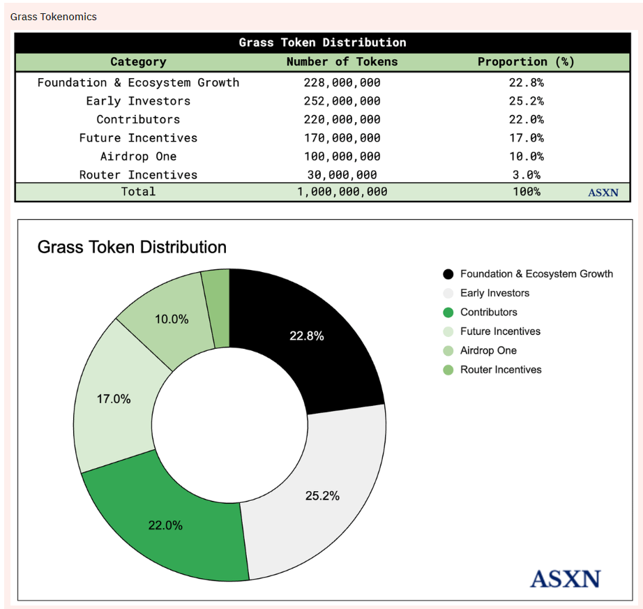 Grass的代币经济模型设计周全,确保项目的长期可持续性。根据官方信息,$GRASS的总供应量为10亿枚,具体代币分配情况如下: