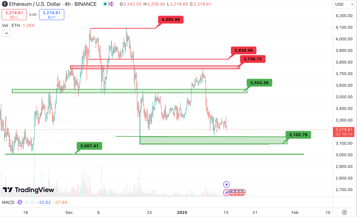 对于以太坊来说,上周的下跌已完全回吐了12月末的涨幅,现阶段价格甚至开始持续测试3100美元上方支撑有效性。本周需关注走势能否形成小时级别双底反弹形态,若成立则短线可期待3550美元阻力测试,反之或关注3100美元甚至3000美元的强支撑。
