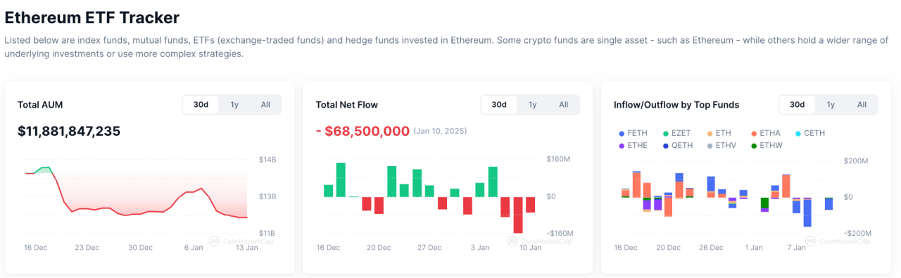上周交易日( 1 月 6 日至 1 月 10 日)以太坊现货 ETF 上周单周净流出 1.86 亿美元。上周单周净流入最多的以太坊现货 ETF 为贝莱德(Blackrock)以太坊 ETF ETHA 周度净流入为 1.24 亿美元。