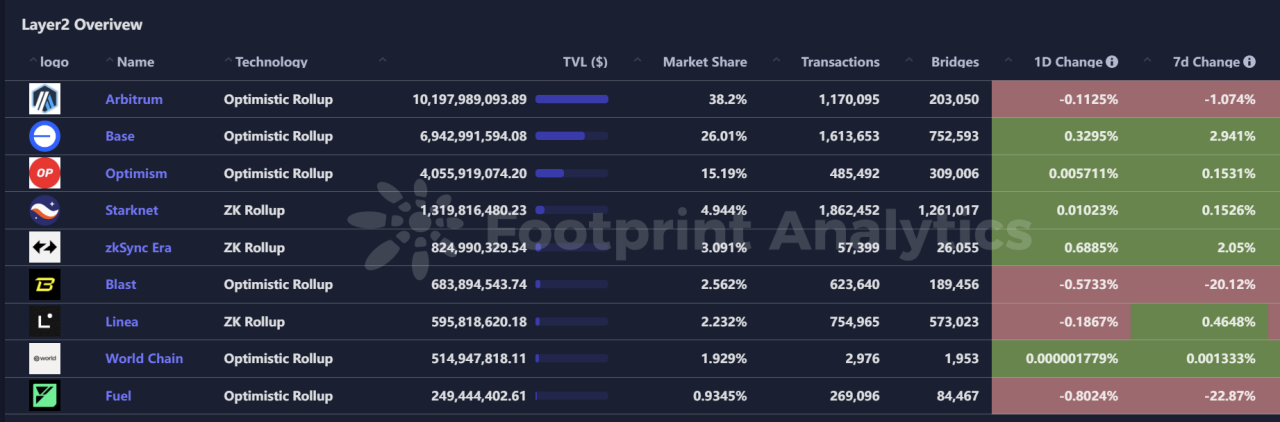 Arbitrum的领先地位:Arbitrum通过Nitro升级,实现了与以太坊虚拟机(EVM)的全面兼容,使得从以太坊迁移至Layer 2的智能合约过程变得极为简便,几乎无需任何调整。这使得Arbitrum在以太坊Layer 2领域保持领先地位。