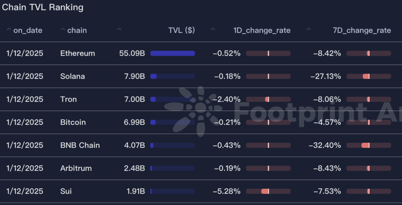 Solana和Tron的TVL增长:尽管市场情绪低迷,Solana和Tron的总锁仓量(TVL)在本周分别录得6%和7%的增长,显示出这两个非EVM公链的生态系统仍在稳步发展。