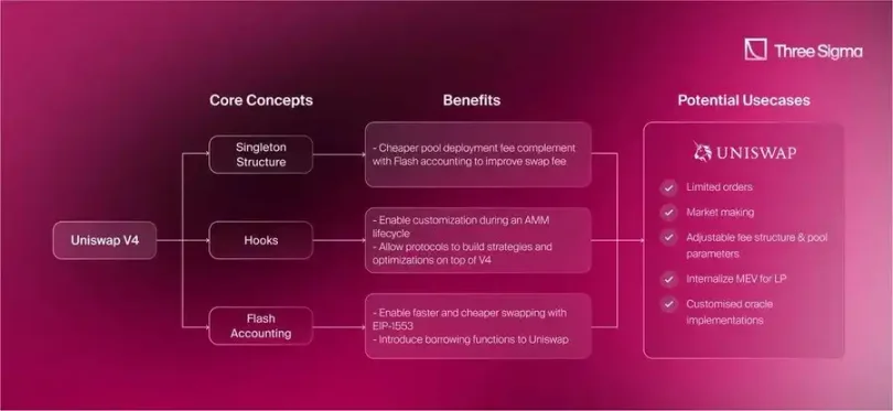 这些功能的结合意味着 Uniswap V4 是一个更加可定制的集成,具备多个优化机制,带来实际的开发者和用户利益: