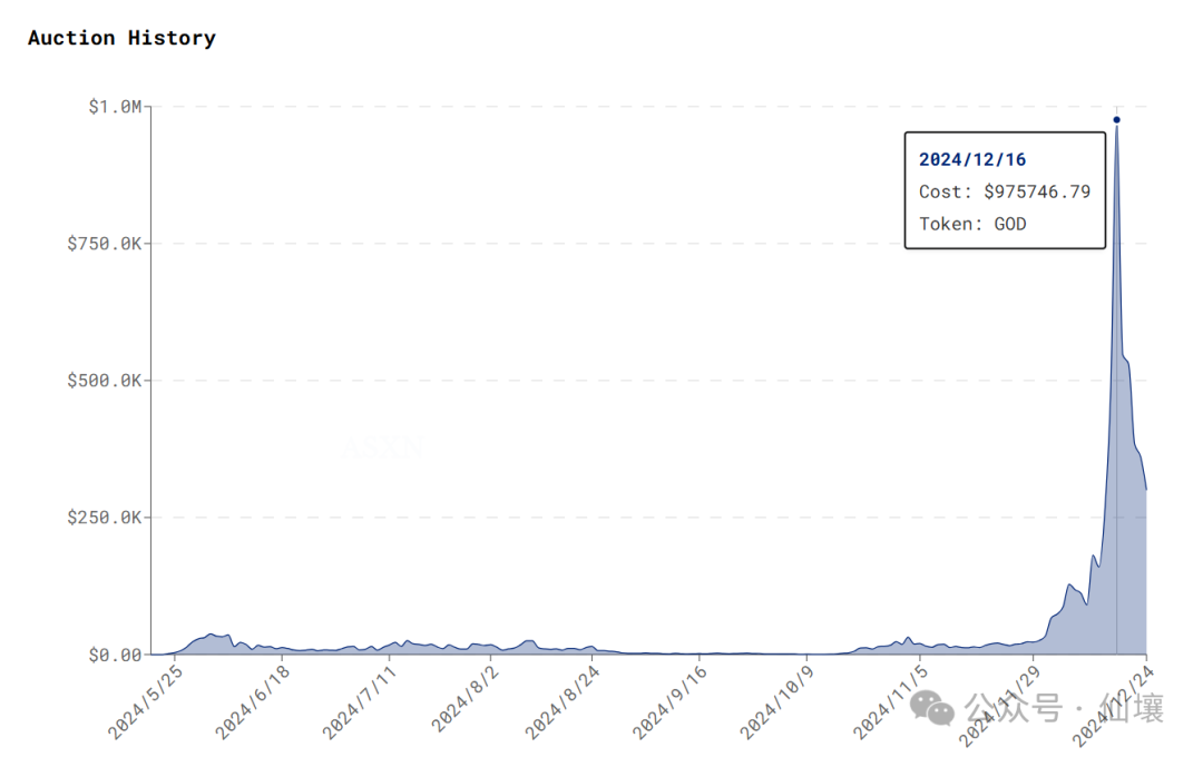 在Hyperliquid的方案中,每31个小时作为一个“拍卖周期”,每个周期内对1个上币名额进行公开拍卖,每年的上币名额被限制为280个。每个拍卖周期开始时,以上个周期内成交价的2倍开始新一轮拍卖。如果上个周期内拍卖无果,则本周期重新从1万美金起拍。由于采用荷兰拍,拍卖价会从初始价位逐级下降,直到出现接受卖价的竞拍者,会获得上币的权力。