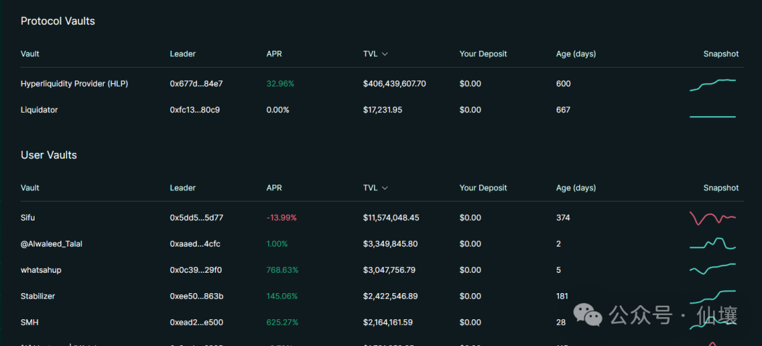 如今市场热度有所下降,但Hyperliquid Vaults的TVL仍维持在数亿美元,已完成了冷启动,其中某些Vault的APR甚至达到近9000%,颇具造富效应。不过有一个问题需要注意。对于如何保证存入金库资金的安全性,目前官方似乎没有披露相关信息,存在一定隐患。