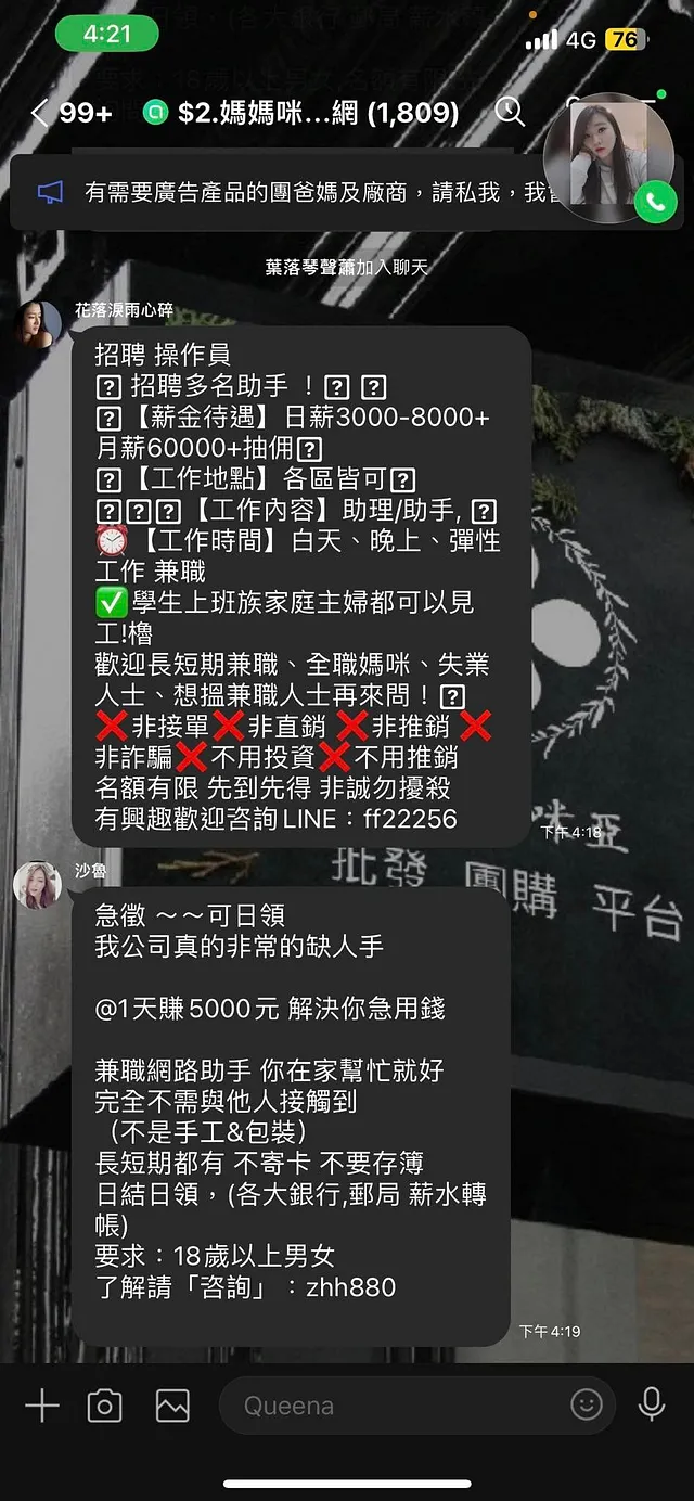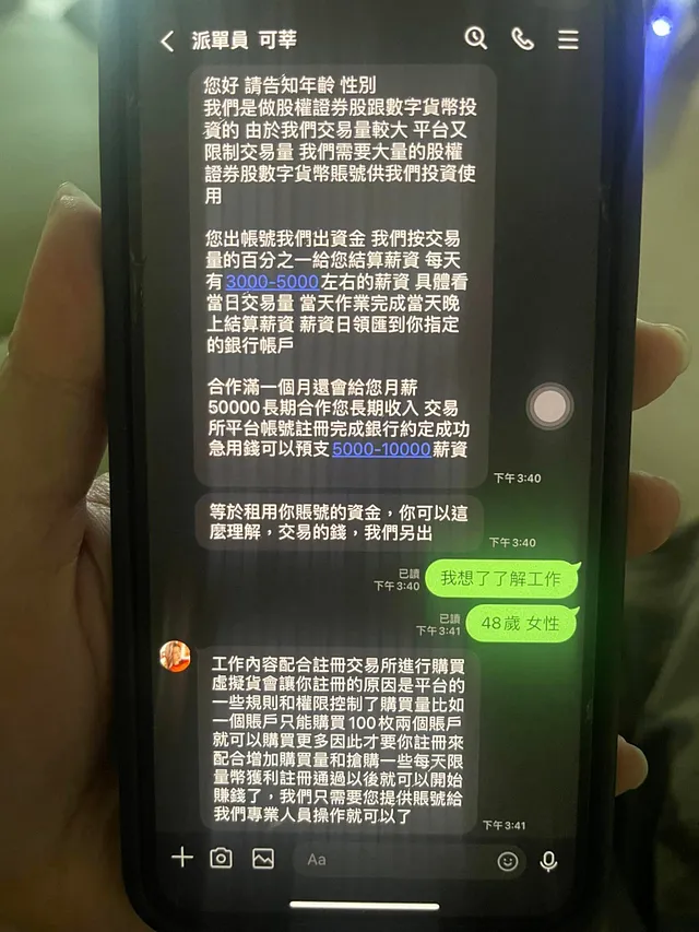 这种在旁边接话抬轿的都是诈团人头帐号,行话叫作「水军」。水军帐号有专门的公司负责打理贩售,各种媒介如 LINE、脸书、微博等等任君挑选,帮你弄好名字与照片是基本的,甚至简单的发文与点讚都有。
