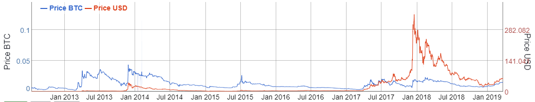 每4年,莱特币将进行减产,每个区块挖出的莱特币减半,上一次减半发生在2015年8月26日,莱特币的区块奖励由50个减半到25个。产量减半从理论上来说会导致供需不平衡,价格上涨,但实际情况却有很多影响因素,15年莱特币减半从其价格表现上可以看出,减半后并没有发生价格上涨,反而有些跌幅。从今天的视角看过去,有几个原因可以作为解释。