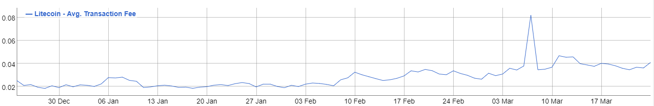 近3个月LTC平均手续费LTC链上交易数与交易额相较于BTC、ETH还有不少差距,但考虑到其市值和用户群体规模,以及24小时交易额能够占到总市值的5.51%,并有55822个活跃地址,LTC的链上交易可以说还是相当活跃的,尤其近三个月,从其交易手续费的走势可以看出,链上交易在逐渐活跃并保持著增长。