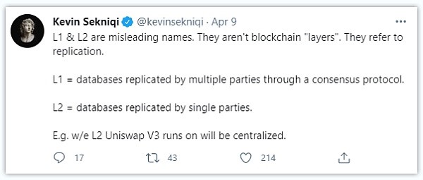 This centralization confuses crypto users who are used to consensus-based blockchains. In fact, if the story were to end there, we might (wrongly) conclude that Rollups is just "a database copied by a single side," as Avalanche co-founder Kevin Seqniqi recently tweeted (wrongly).