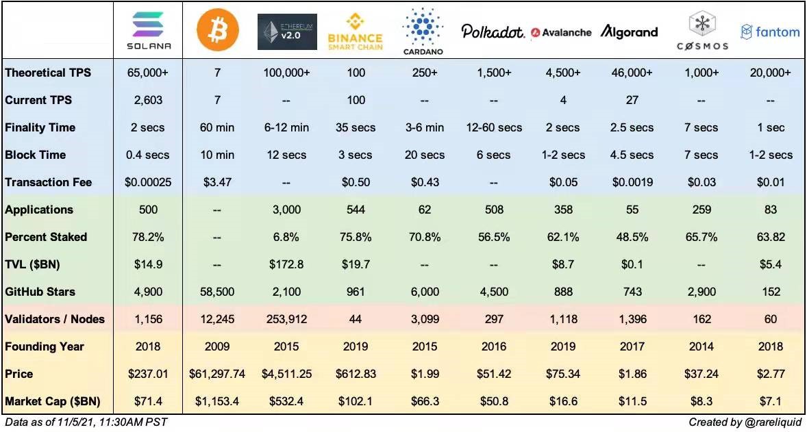 比如,Solana能够支持每秒超过50,000笔交易事务,同时维持400毫秒的出块时间,同时把TPS的提升绑定在摩尔定律上,进而提供了一种TPS扩容的“可预测性”。此外,Solana低廉的执行费用更是令人难忘:100万次交易的网络交易成本仅10美元左右。