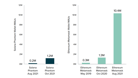 凭借一站式出色的使用体验,Phantom已成为用户参与Solana时的首选钱包,月度活跃用户已突破120万,2021年8到10月的两个月期间,该数字增长了5倍。