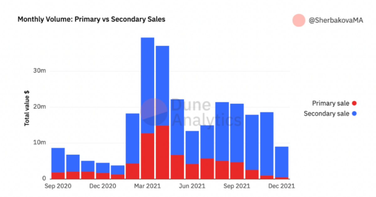 月交易量(以一级与二级) 来源:Dune Analytics