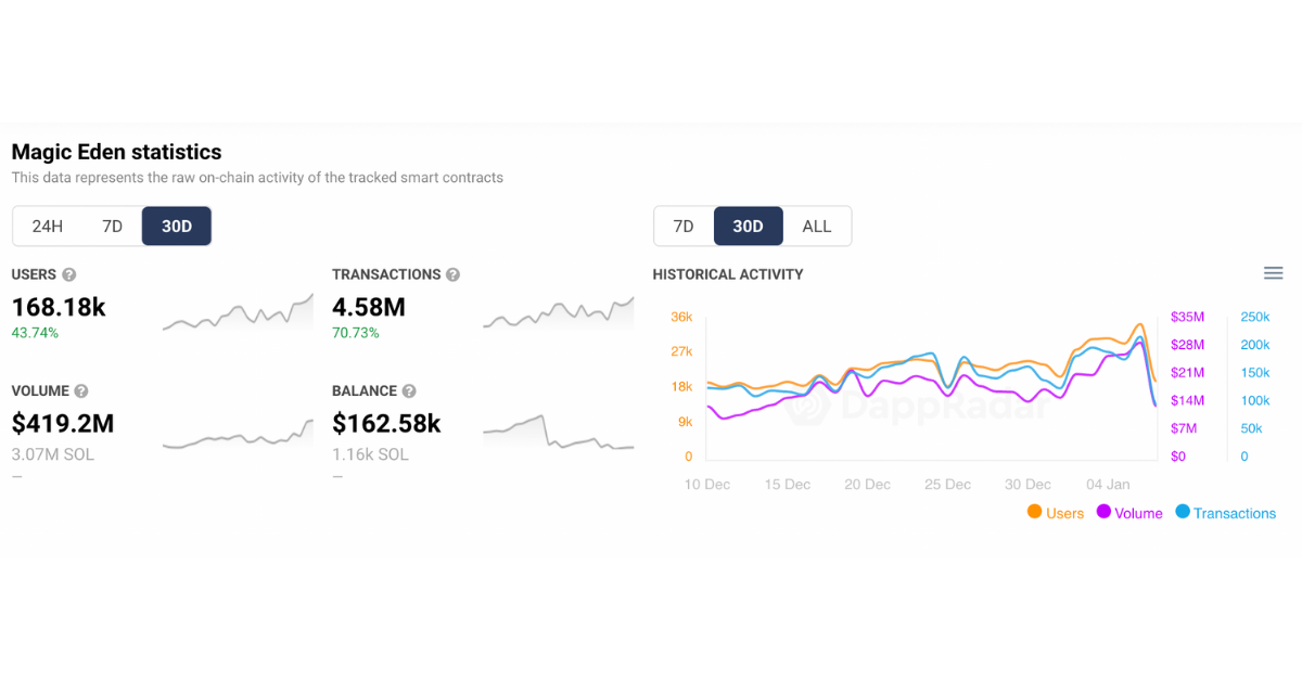 Magic Eden链上数据:来源:DappRadar