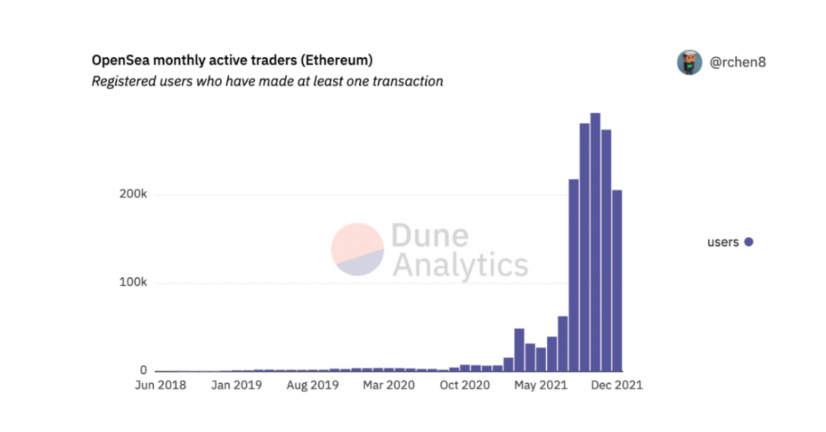 OpenSea月活跃交易者 来源:Dune Analytics