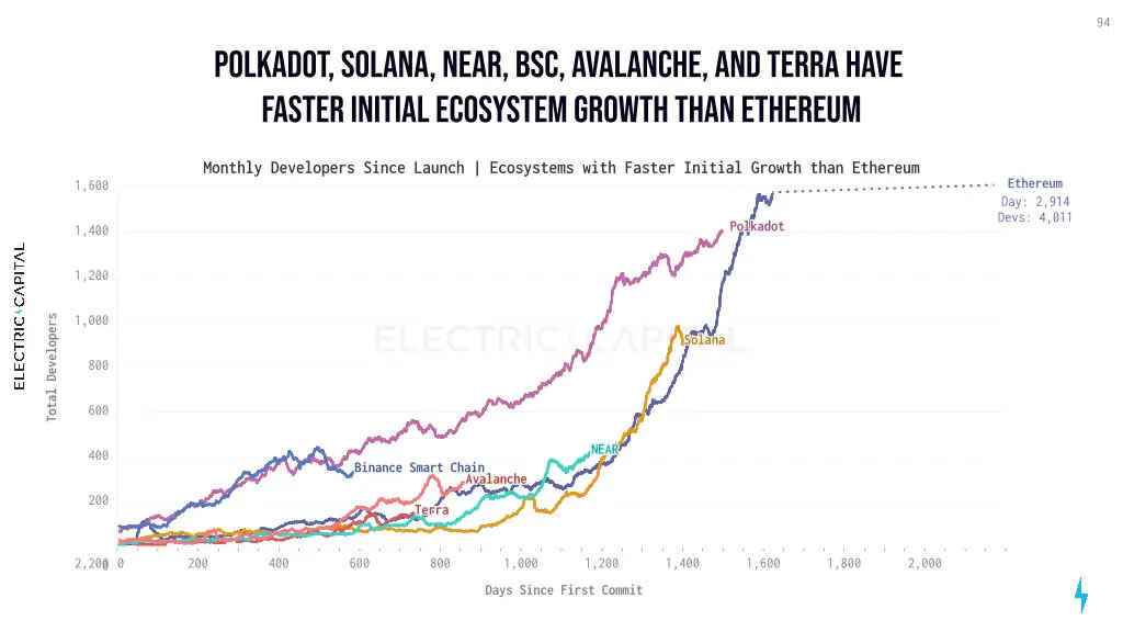 “Polkadot、Solana、NEAR、BSC、Avalanche和Terra的增长速度比以太坊在其历史上的类似点要快。”