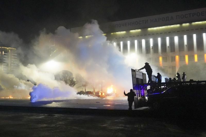 2022年1月5日,哈萨克阿拉木图,示威民眾与警方爆发暴力冲突(美联社)