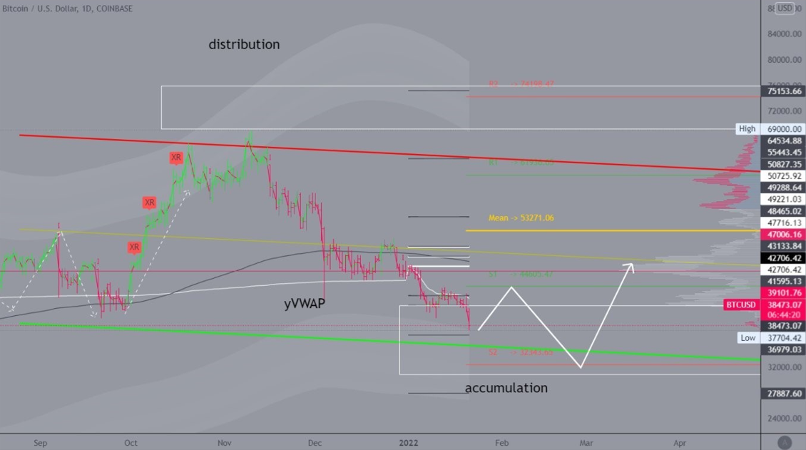 “从技术上看,38,000美元的支撑区是BTC进入28,000- 38,000美元盘整区间的分水岭。比特币上一次在上述区间内盘整是在2021年第一季度和第二季度。”