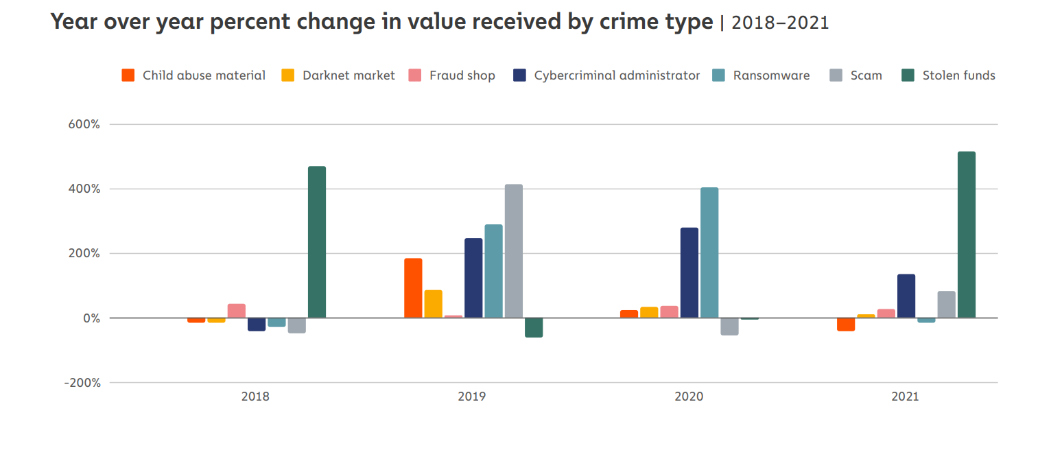 通过加密犯罪类型获得的价值:Chainalysis