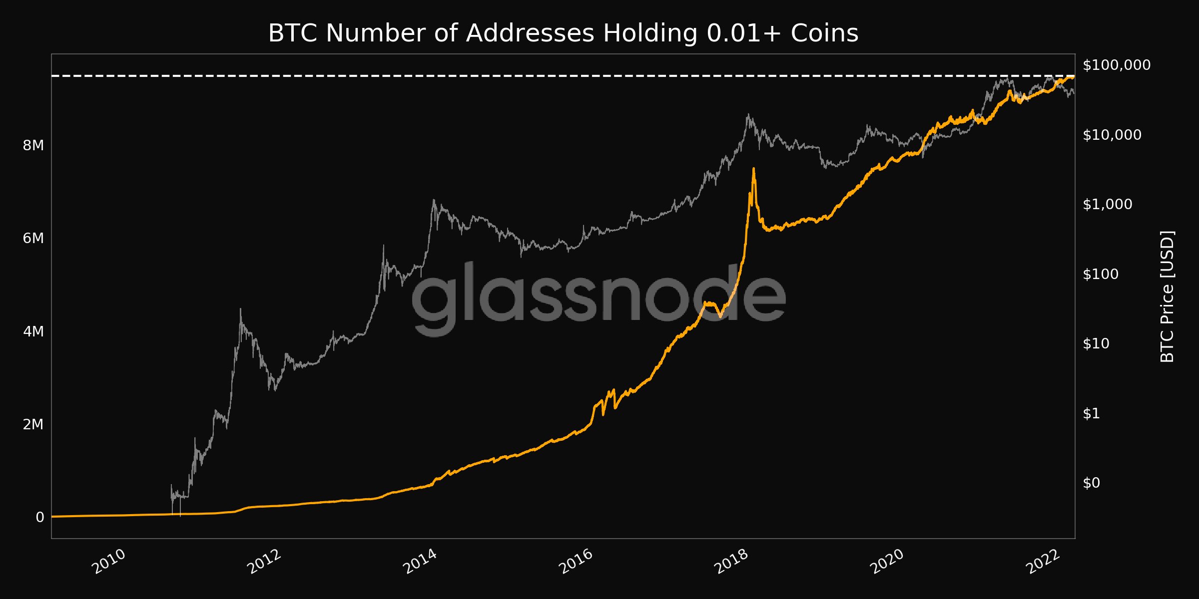 余额为0.01 BTC或以上的比特币地址 来源:Glassnode/Twitter