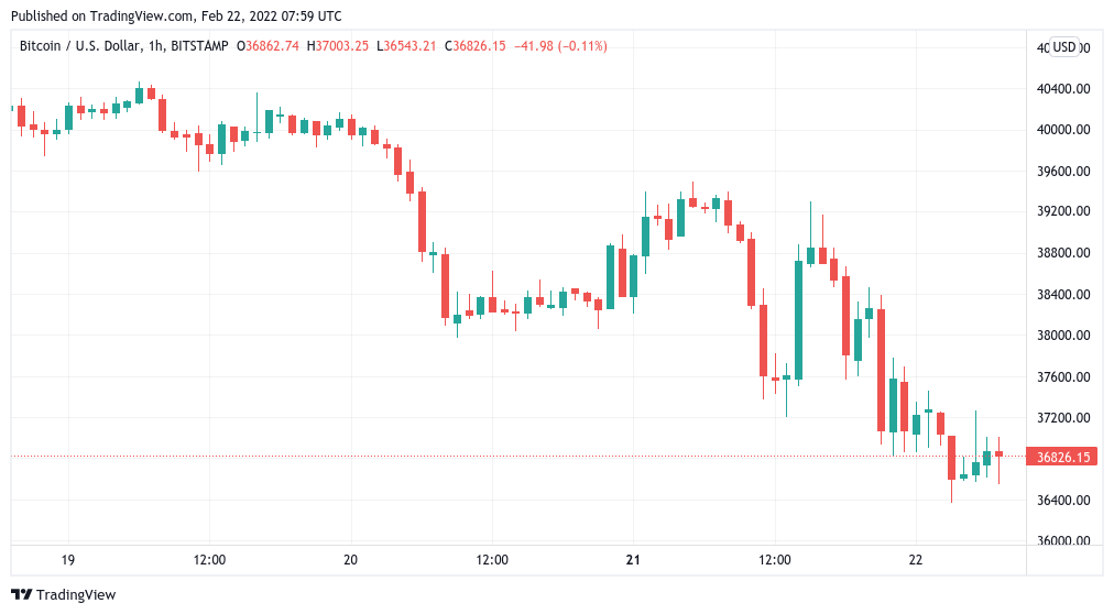 比特币(BTC)在 2 月 22 日跌至新低,原因是俄罗斯入侵乌克兰引发了更多的市场困境。
