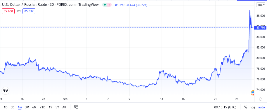 根据 CoinGecko 的数据,最新事件对俄罗斯股市和加密货币市场产生了巨大影响,比特币 (BTC) 自 2021 年 6 月以来首次短暂跌破 35,000 美元。自去年 8 月以来,总市值首次跌破 1.7 万亿美元。