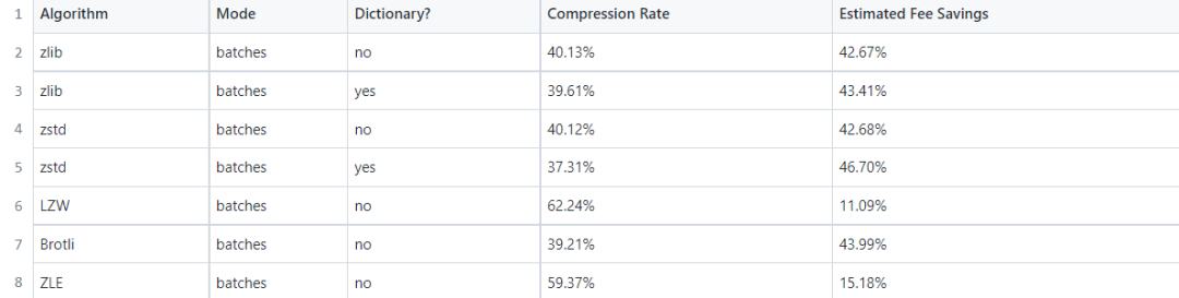 基于 Zstd 算法的压缩 (带有字典的) 在 Optimism 未来的升级路线规划中:Bedrock,将在今年晚些时候发布。