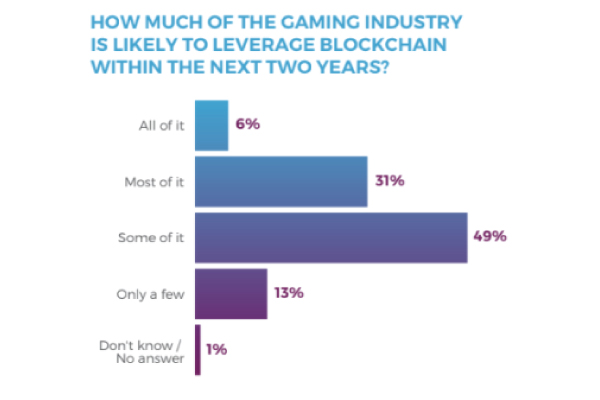 在区块链游戏联盟发布的2021年报告中,一项调查显示,当被问及区块链行业在未来两年内有多大可能利用区块链时,许多受访者与WAX的高管有相同的看法。