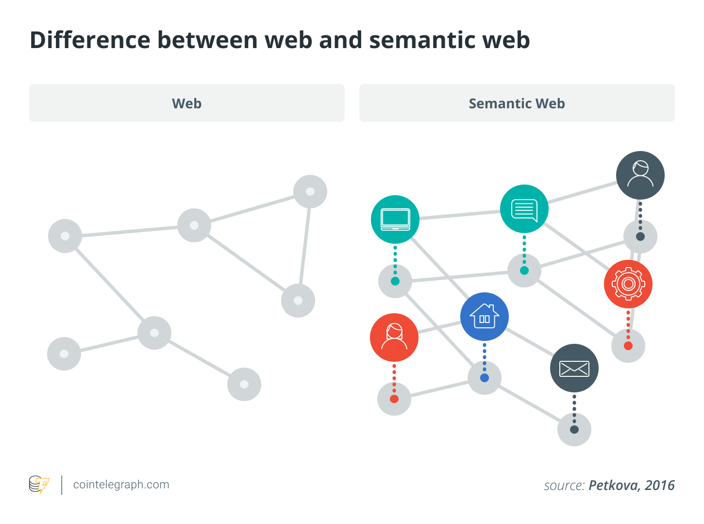 语义网将网络上的文档/信息的概念扩展到有价值的数据,使信息在与数据进行语义链接时变得更有意义(和价值),然后将数据转换为有价值的东西——导致Web3原则中的货币化和问责元素。