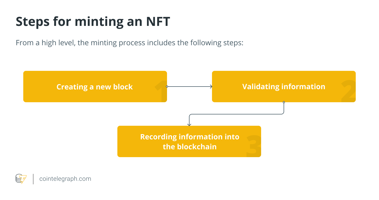 当某人生成或铸造NFT时,就会执行按照各种标准(如ERC-721)的智能合约代码。这些数据存储在区块链上,NFT就是在这里处理的。