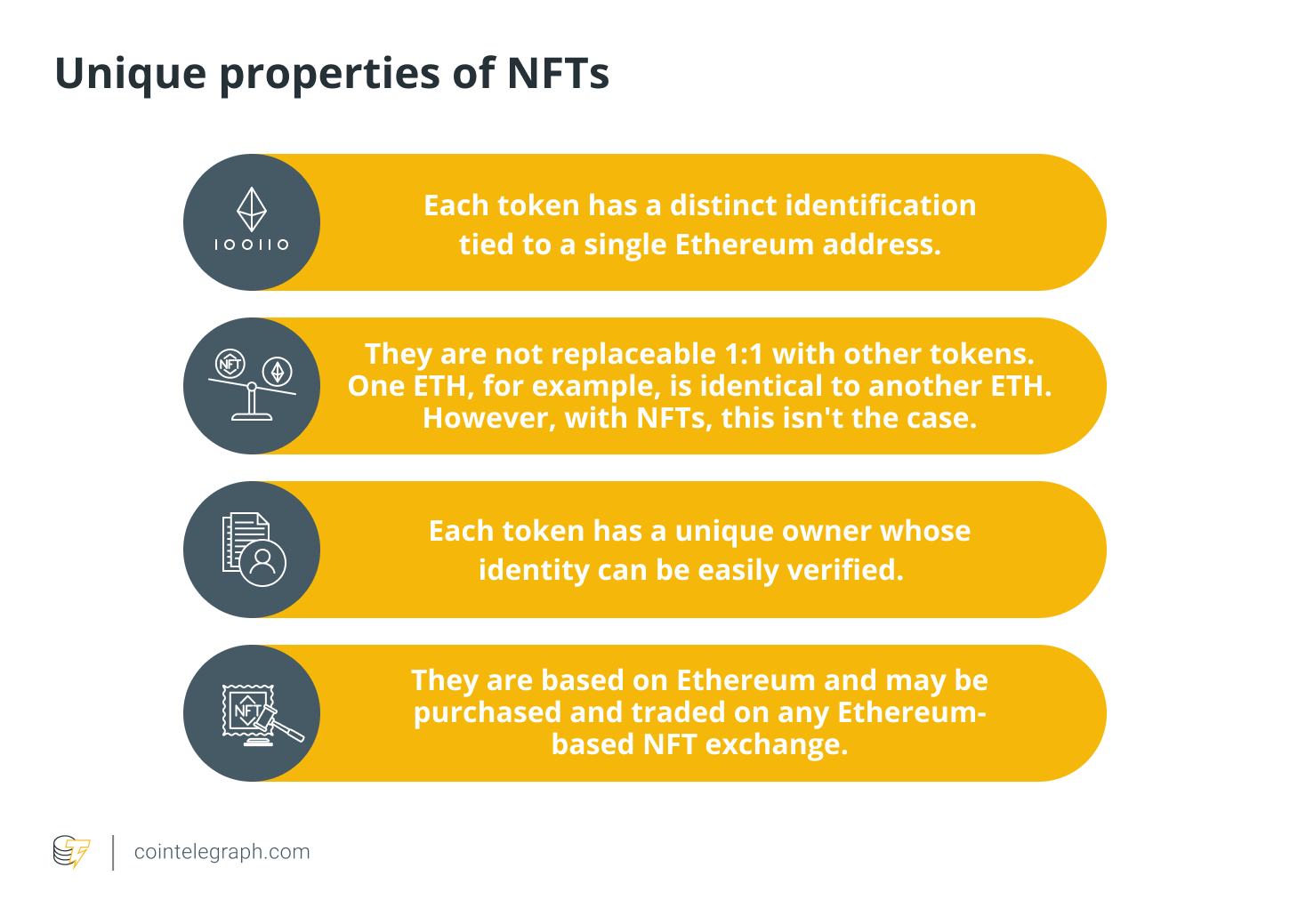 NFT的价值围绕着这些数字资产的不可替代性,这是使它们与加密货币区别开来的特征,因为NFT和加密货币是不同的东西。每枚NFT都有其独特的属性集——例如大小、稀缺性、创建者等——因此不能与其他资产交换。