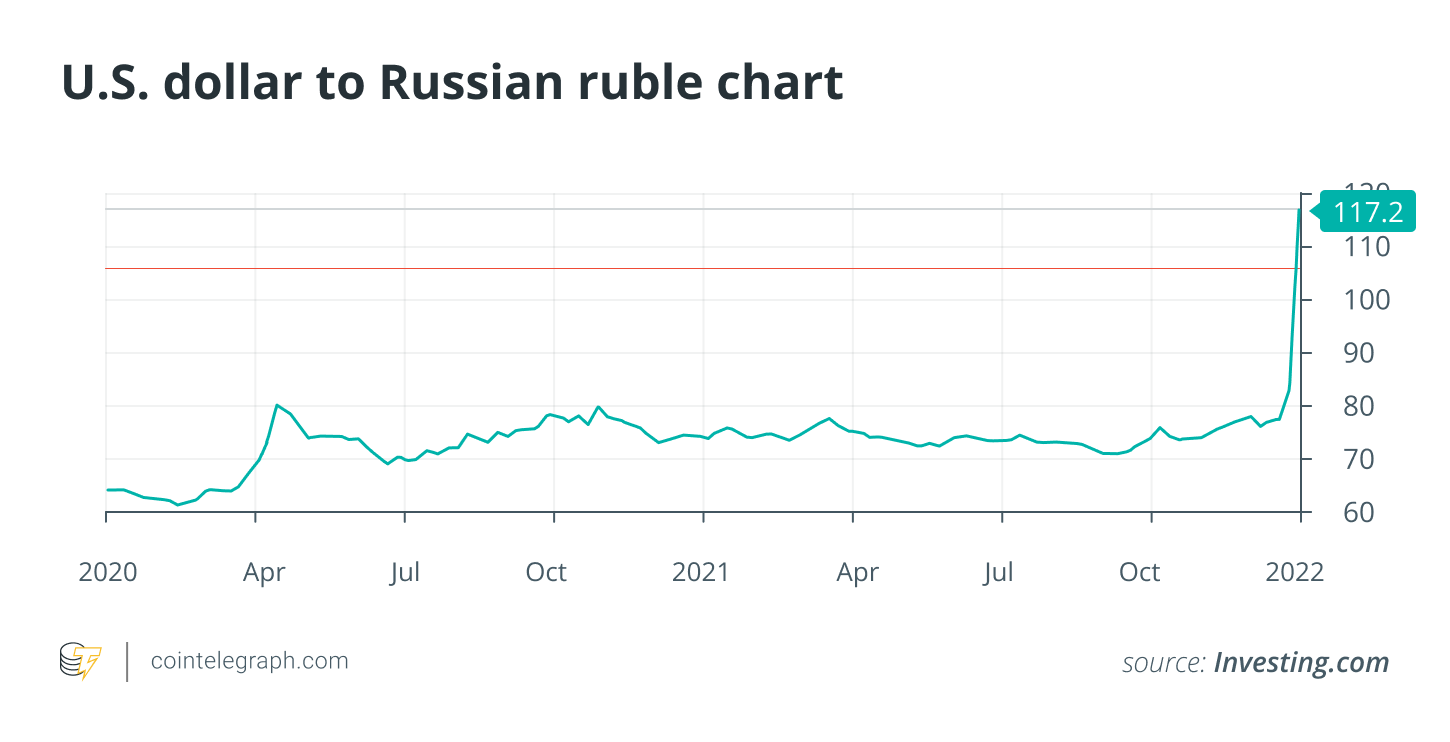 这些制裁措施导致俄罗斯卢布大幅贬值。与一周前相比,卢布贬值了30%左右。尽管传统的俄罗斯银行承受着制裁的后果,但加密货币仍然是人们将日益贬值的法币转换为加密货币的一种选择,以在银行准入不太安全的情况下保护自己的财富和确保流动性。据路透社报道,卢布和Tether (USDT)之间的交易量自上周以来已经增长了两倍。