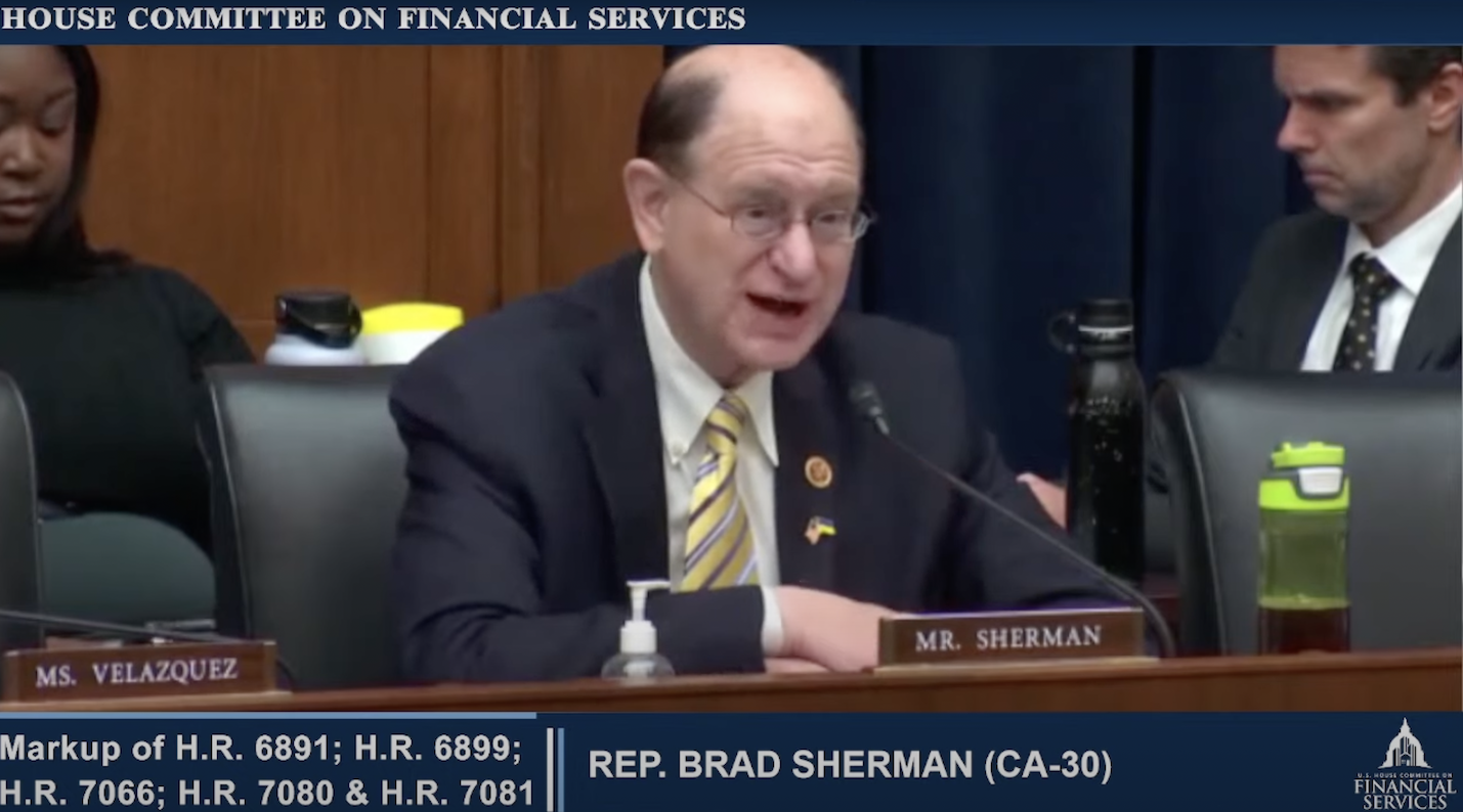 众议员Brad Sherman周四在众议院金融服务委员会发表讲话