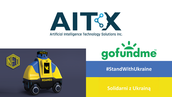 人工智能技术解决方案公司(AITX)宣布将通过两种途径为乌克兰人道主义救济筹集资金,第一种途径是一个已铸造的NFT,包含Robotic Assistance Devices生产的Roameo的图像。目前正在通过在线拍卖筹集资金。第二种途径是GoFundMe的一个页面,该页面由首席执行官Steve Reinharz创建,旨在为一家乌克兰援助组织提供资金,据报道已得到国际红十字会证实。
