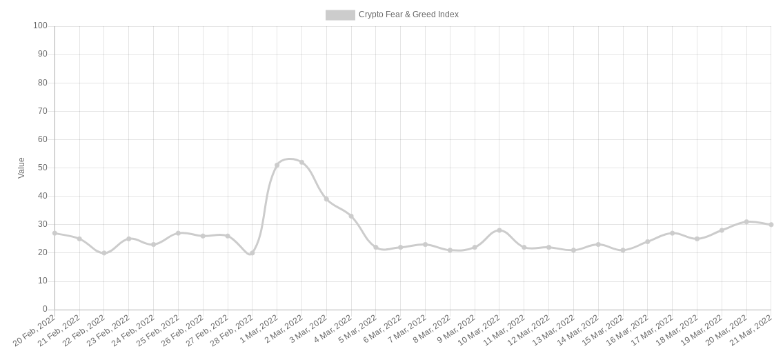 周日,该指数为 31/100,创下 3 月 4 日以来的最高水平,表明投资者基于宏观因素的最严重恐慌(至少暂时如此)正在缓解。