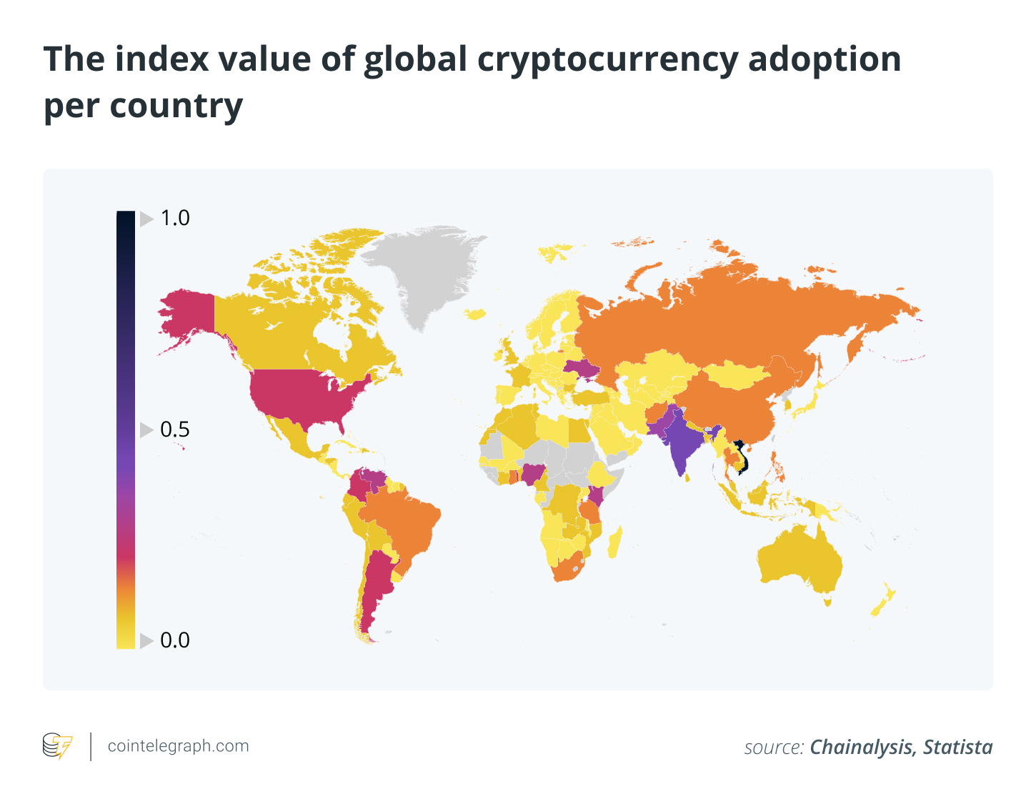 乌克兰副总理在推特上发布政府的加密钱包地址后不久,加密货币开始以前所未有的速度进入乌克兰政府的钱包。事实上,乌克兰在数据公司Chainalysis编制的全球加密货币采用指数(Global Crypto Adoption Index)中排名第四,该公司估计,每年大约有80亿美元的加密货币进出该国。据《纽约时报》报道,每天的加密货币交易量约为1.5亿美元,超过了格里夫纳在银行间的交易量。