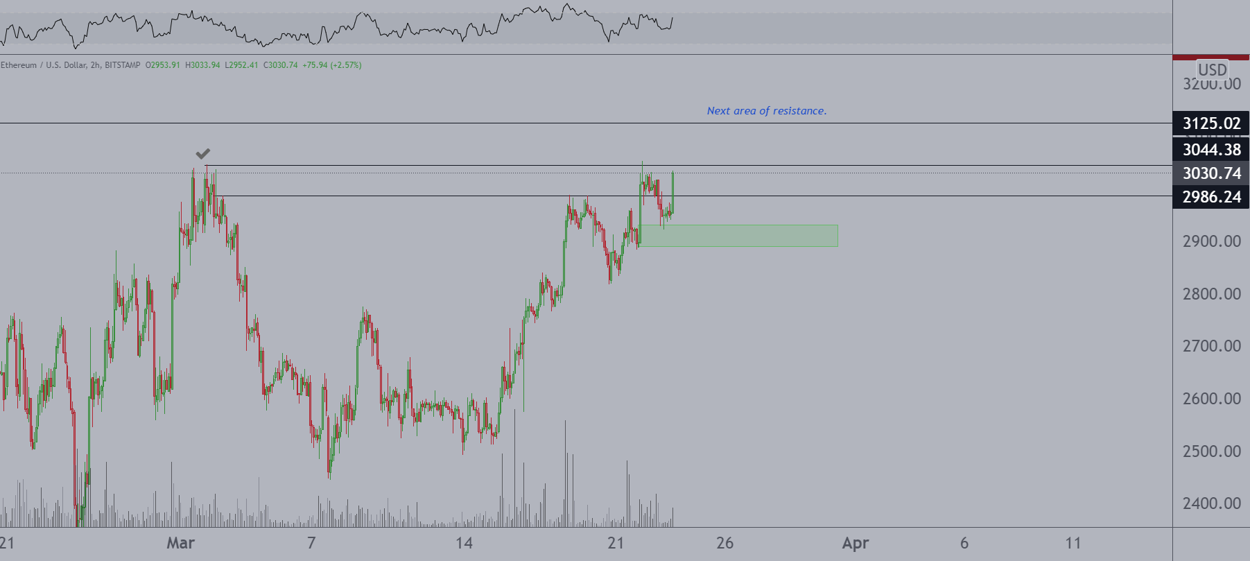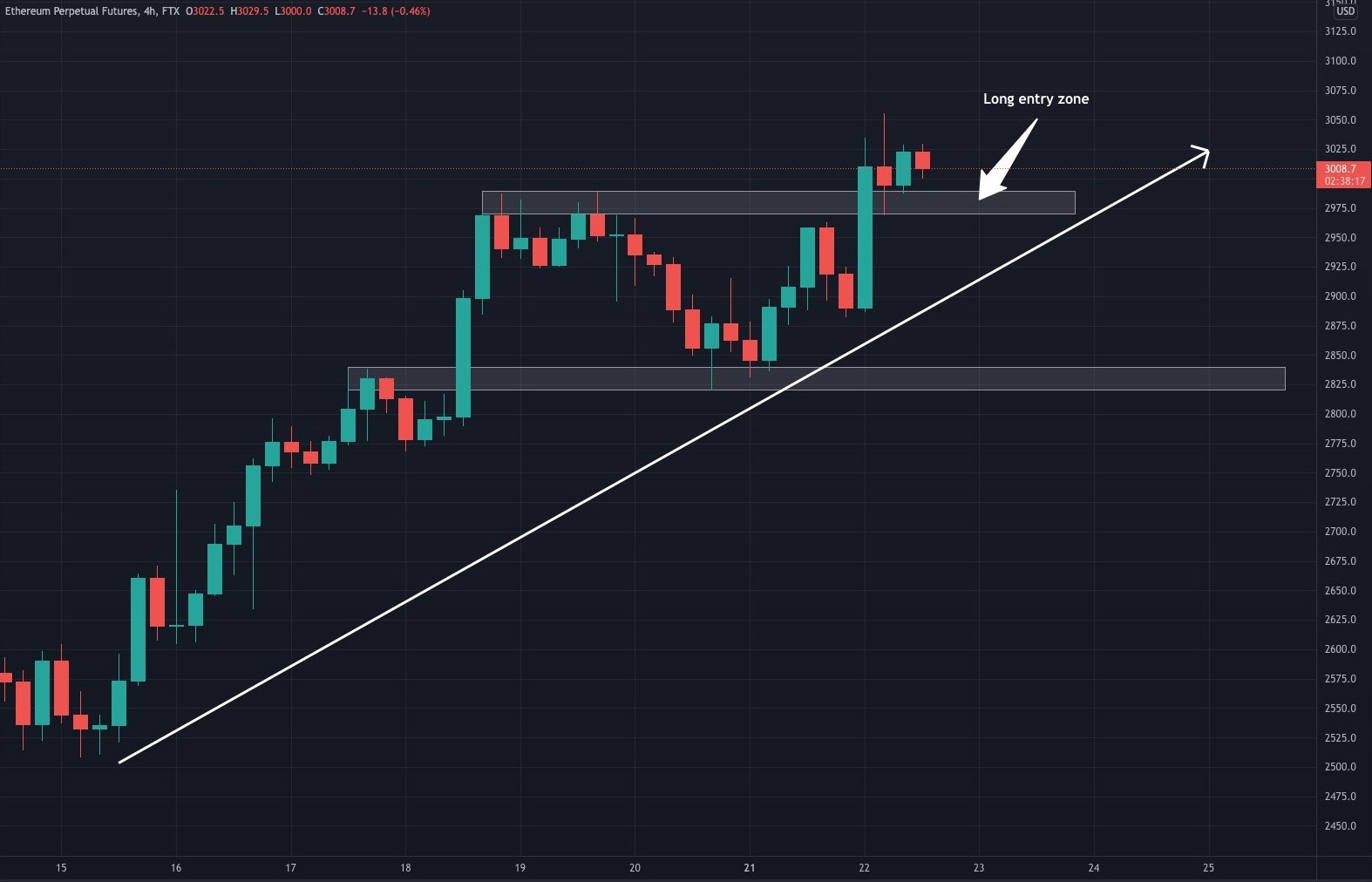 根据图表中突出显示的区域,Charpunk 希望在2,975 美元左右重新进入。