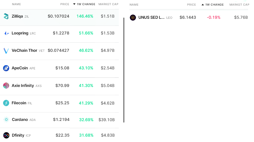 前 80 位代币中的每周赢家和输家 来源:Nomics